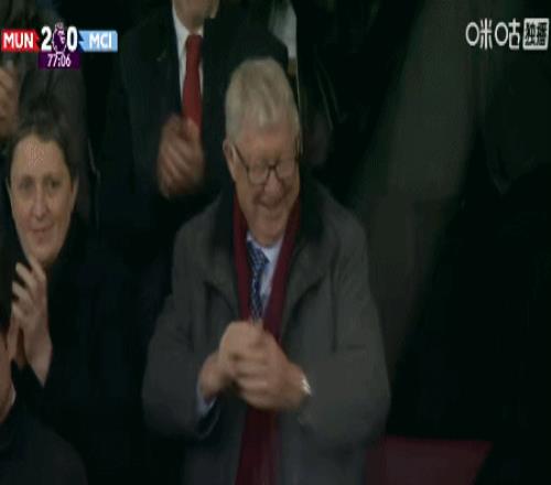 第78分钟,曼联再下一城,看台上的弗格森起立鼓掌