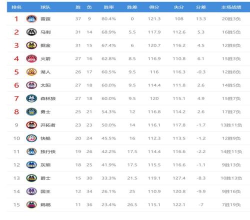 国王输球后12胜34负,继续排名西部第14。