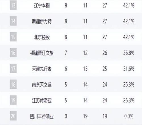 广厦输球仍第1,广东追平豪门,山东逼近前4,辽宁第13,黑马陨落