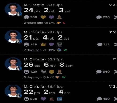 虽然球队输球,但对于独行侠年轻球员克里斯蒂而言,这又是一场生涯之夜。